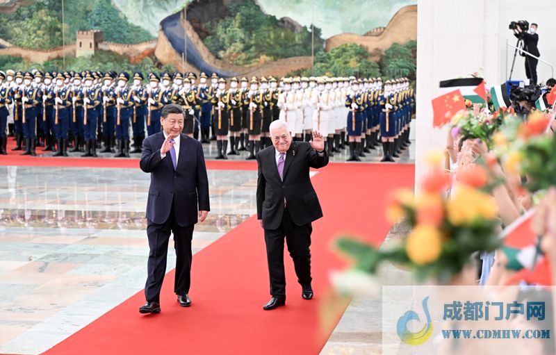 会谈前,习近平在人民大会堂北大厅为阿巴斯举行欢迎仪式。