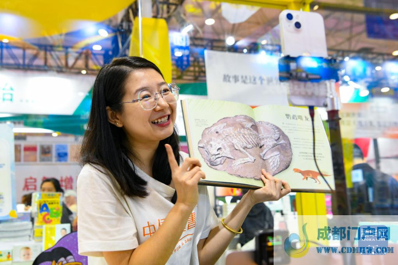 10月13日,在位于成都市世纪城新国际会展中心的2023天府书展主展场,工作人员在直播售卖图书。新华社记者 唐文豪 摄