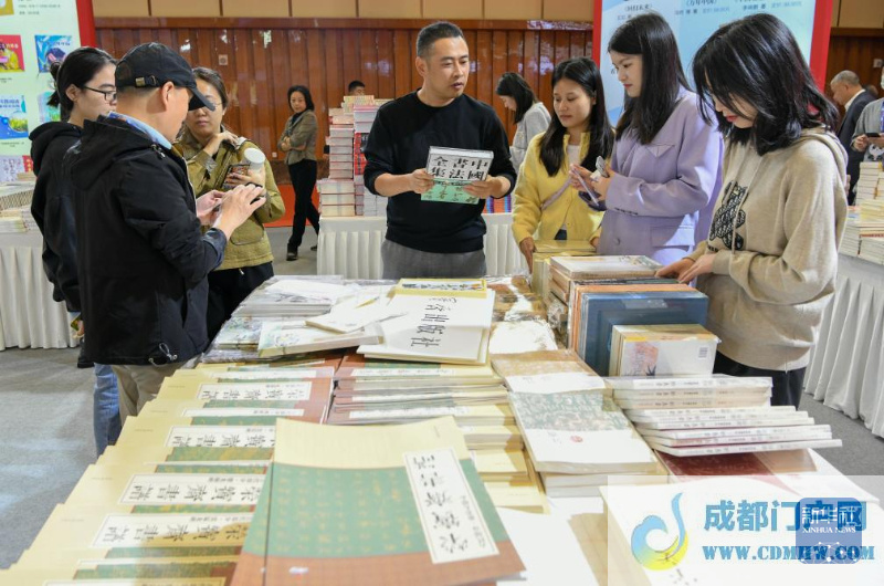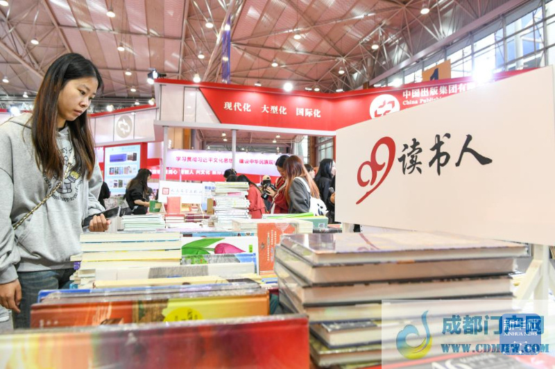 10月13日,在成都市世纪城新国际会展中心,市民在2023天府书展主展场选购图书。新华社记者 唐文豪 摄