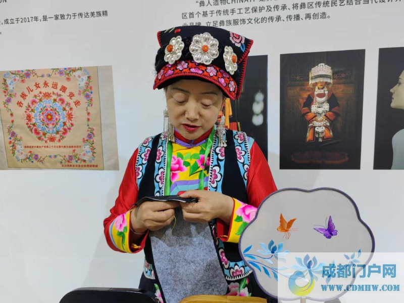 陈云珍在成都国际非遗节现场展示羌绣技艺。新华社记者董小红 摄