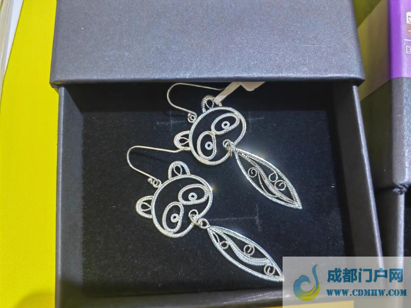 王晓璐制作的银花丝熊猫耳环。新华社记者 董小红 摄