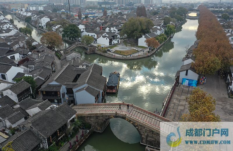 古运河畔的清名桥历史文化街区晨景(无人机照片,12月9日摄)。