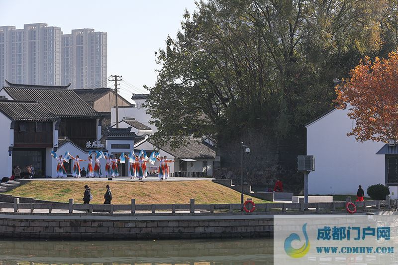 舞蹈爱好者在古运河畔的清名桥历史文化街区表演节目(12月8日摄)。