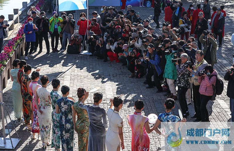 摄影爱好者在古运河畔的清名桥历史文化街区拍摄旗袍秀(12月8日摄)。