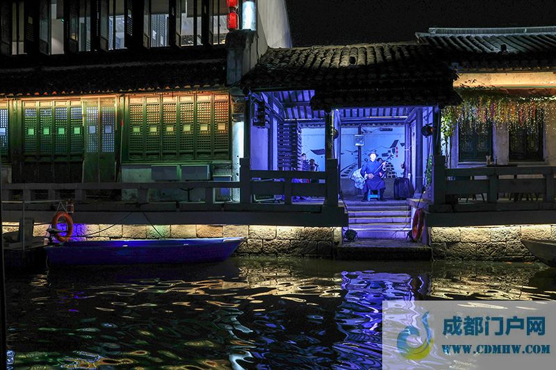 演员在古运河畔的清名桥历史文化街区表演评弹(12月7日摄)。
