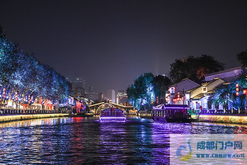游船行驶在清名桥历史文化街区的古运河(12月7日摄)。