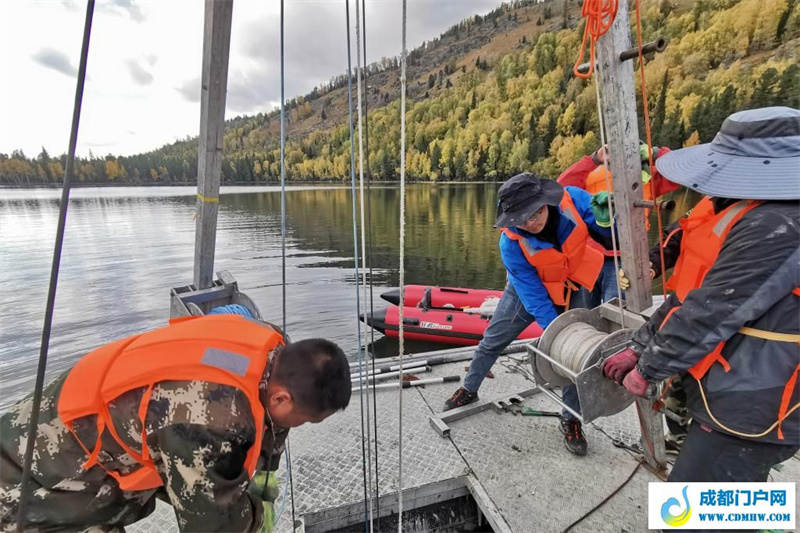 研究团队成员搭建浮台在湖心采集沉积物样品。(受访者供图)