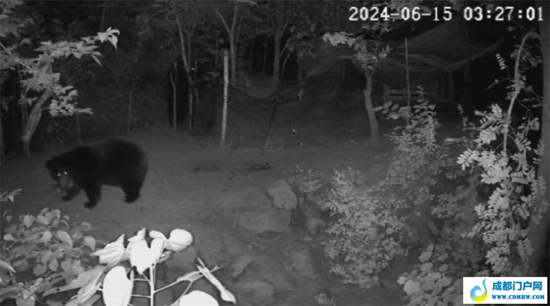 2015年6月,金堂县赵家镇村民罗肖家的养鸡场,疑似连续有黑熊出没,一度喝了他家2斤蜂蜜和4斤白酒。