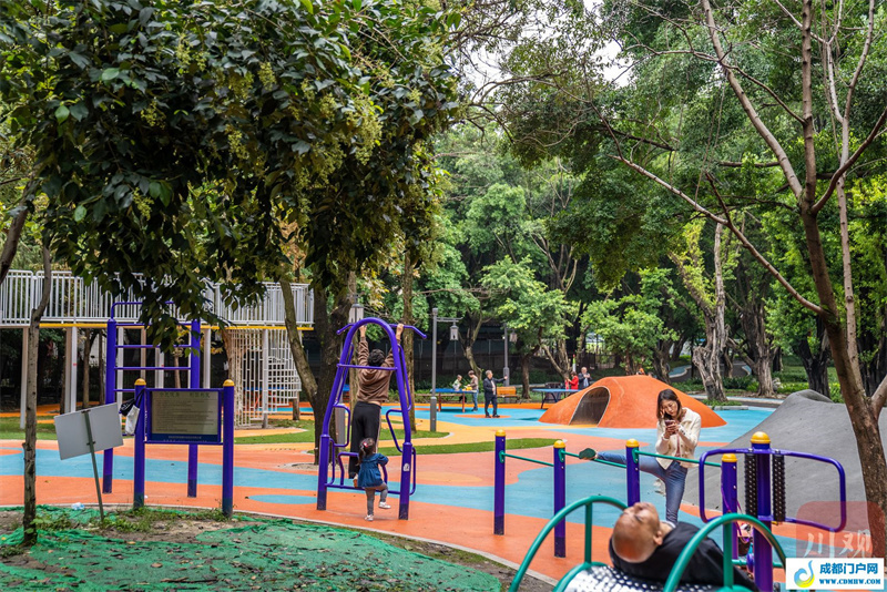 这是成都最新打造的口袋公园,于两个月前完成更新改造并对外开放。“以前是个封闭式的老公园,老年人喜欢来散步,改造后公园吸引了各年龄段居民,还引入户外运动,打造全龄参与的户外运动场景,探索可持续发展创新路径。”成都市武侯区公园城市建设和城市更新局工作人员说,当下周末人流量达2万人次左右。
