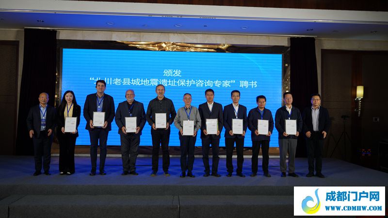 会议前,与会专家到北川老县城地震遗址、5·12汶川特大地震纪念馆现场考察。会议期间,5·12汶川特大地震纪念馆为葛家琪、乔治欧·孟迪、杨维国等9位专家颁发“北川老县城地震遗址保护咨询专家”聘书。