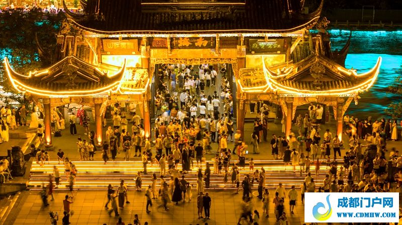 夜幕降临,成都都江堰南桥的晚风里藏着温柔。青蓝色霓虹灯光给岷江披上薄纱,缥缈轻柔,十分梦幻。南桥之上,雕梁画栋映着灯火,行人脚下是奔流的历史,身边是自在闲适烟火气——古与今在此相拥,连晚风都带着甜。每晚24点前,都可以来打卡哦!