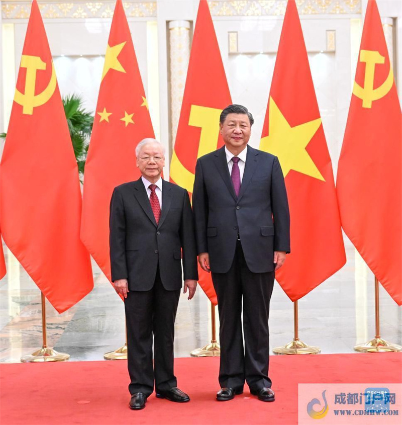 阮富仲表示,非常感谢习近平总书记邀请我率领越方领导人作为中共二十大后第一个元首级代表团访华,我也实现了向习近平总书记同志作出的将中国作为我连任越共中央总书记后首访国家的承诺。我代表越南党、政府和人民就中共二十大成功举行向中国党、政府和人民表示热烈祝贺,对习近平总书记同志再次当选中共中央总书记表示热烈祝贺,这充分体现了中国党和人民对过去十年在以习近平同志为核心的党中央坚强领导下,在习近平新时代中国特色社会主义思想的指引下,中国取得的巨大发展成就和崇高国际威望的高度认可和信赖。中国共产党取得的成就为世界发展中国家特别是走社会主义道路的国家提供了宝贵经验。我们坚信,在以习近平同志为核心的中共中央领导下,中国一定会实现中共二十大确定的目标任务,为地区和世界作出新的积极贡献。