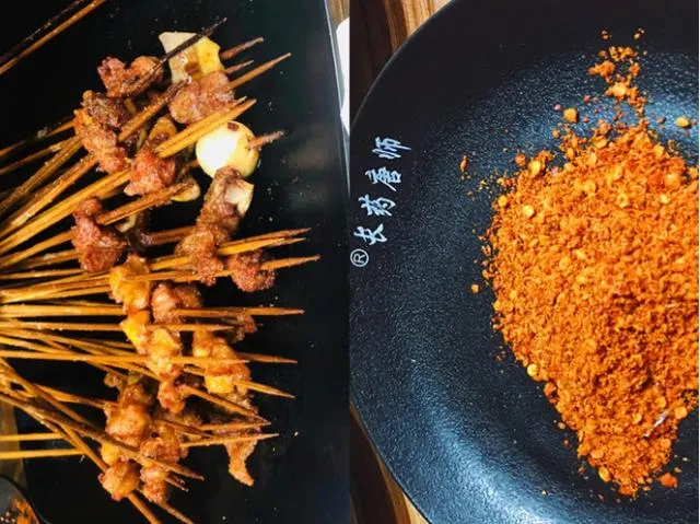 这是藏在一个不起眼的转角的小店,不同于传统的串串,它是将你挑好的菜用油炸过,然后搭配独家调制的蘸料,可以根据自己的口味,选择干碟或是卤碟,又是一种别样的美味。