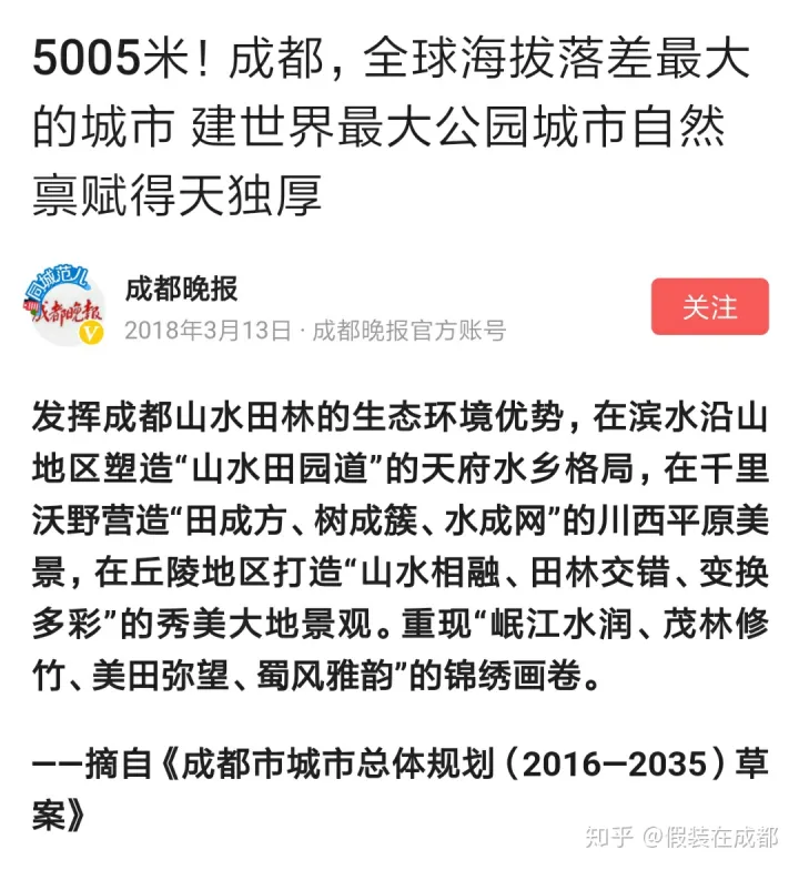 1、成都是世界海拔落差最大的特大城市