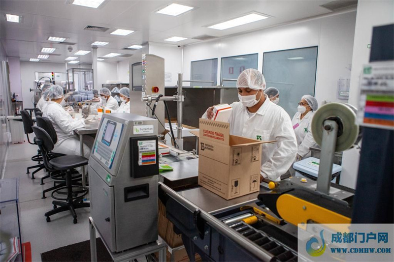 这是2022年8月31日,工作人员在巴西圣保罗州布坦坦研究所的克尔来福新冠疫苗生产线上工作。新华社发(巴西布坦坦研究所供图)