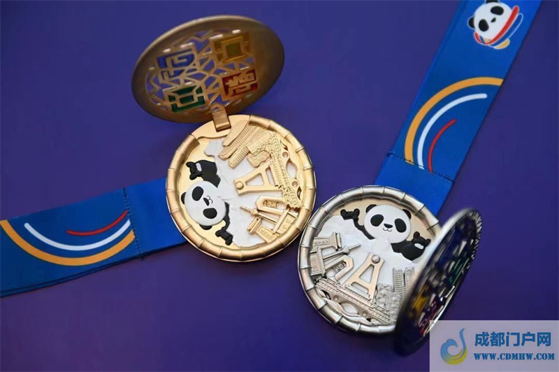 备受关注的完赛奖牌亮相发布会现场。今年的完赛奖牌设计灵感源自于诗人杜甫的名句:窗含西岭千秋雪,门泊东吴万里船。在杜甫笔下,绝美的雪山画面仿佛瞬间就拉到了数百里外的锦官城中,勾画出“雪山下的公园城市”这一鲜活图景。同时借用了中国传统文化中典型的“窗花”意象,奖牌镂空处营造了强烈的视觉层次感,同时保留了经典的太阳神鸟形象,整体氛围营造上表达着成都这座城市的勃勃生机。