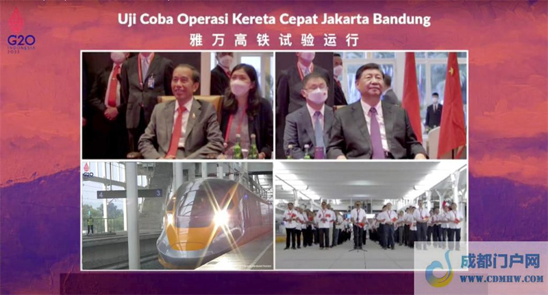 两国元首首先共同视频观摩雅万高铁试验运行并观看两国合作成果展示视频,听取这一印尼和东南亚第一条高铁建设进展情况汇报。两国元首下达指令:“开始!”崭新亮丽的综合检测车缓缓驶出德卡鲁尔车站并逐渐加速前行。全场响起热烈掌声。